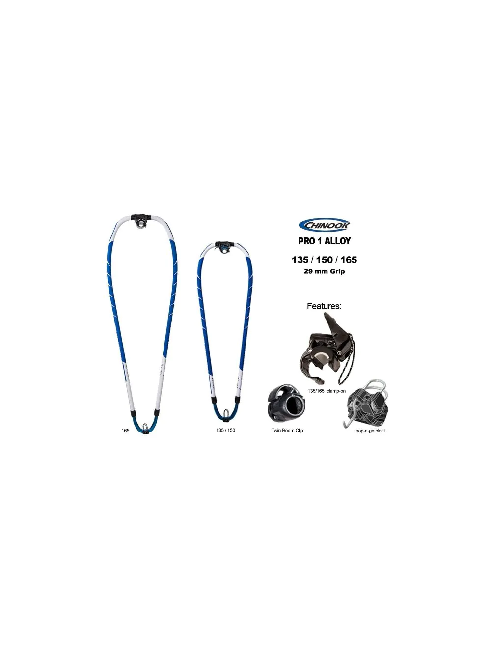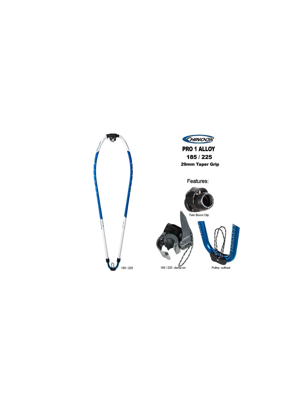 The Chinook Sailing Pro 1 Alloy 150-212cm Boom has exceptional torsional rigidity and fits both standard and reduced diameter masts perfectly. The addition of absolute length markings on a generous 62cm tail-piece aid with rigging your sail properly. The rounded front curve makes hand transitions during jibes, tacks, and the most advanced freestyle moves feel natural. Durability is exceptional.